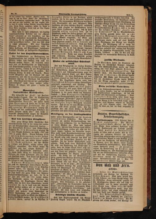 die den anderen Tag stattfand, akzeptiert wurde. Un⸗ wahr ist, daß der Name„Bebel“ oder„Parteileitung“ in der Versammlung ausgesprochen wurde. Ich könnte mir auch gar nicht vorstellen, wie das angehen sollte, da doch die meisten hiesigen Arbeiter bürgerliche Blätter lesen, keinem Verein angehören, mithin die Partei in keiner Weise unterstützen, darum auch gar keine Sozial⸗ demokraten sein können