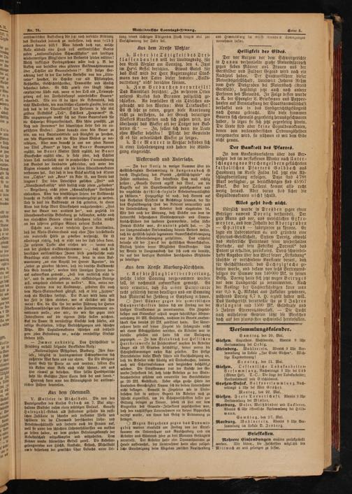 Gießen. Sozialdem. Wahlverein. Abends 9 Uhr Versammlung bei Orbig.