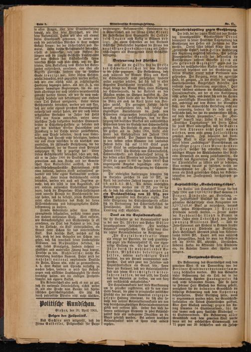 Gießen, den 20. April 1905. Folgen der Zollpolitik.