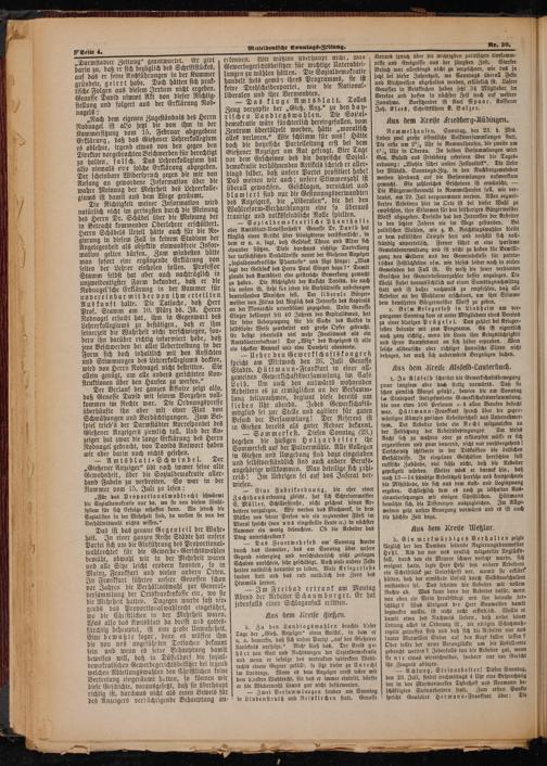 nisse und Ereignisse aus der jüngsten Zeit. Starker Besuch war allerdings nicht zu verzeichnen, wie das ja jetzt bel dieser Jahreszeit, wo Sonntags überall Feste und Kirchwelhen abgehalten werden, erllärlich ist. Unsere Genossen in Reiskirchen haben jetzt 34 Mitglieder im Vereine und hoffen in nächster Zeit noch auf weitere Zunahme. Vorsitzender ist Karl Spaar, Kassterer Joh. Klees, Schriftführer K. Balzer.