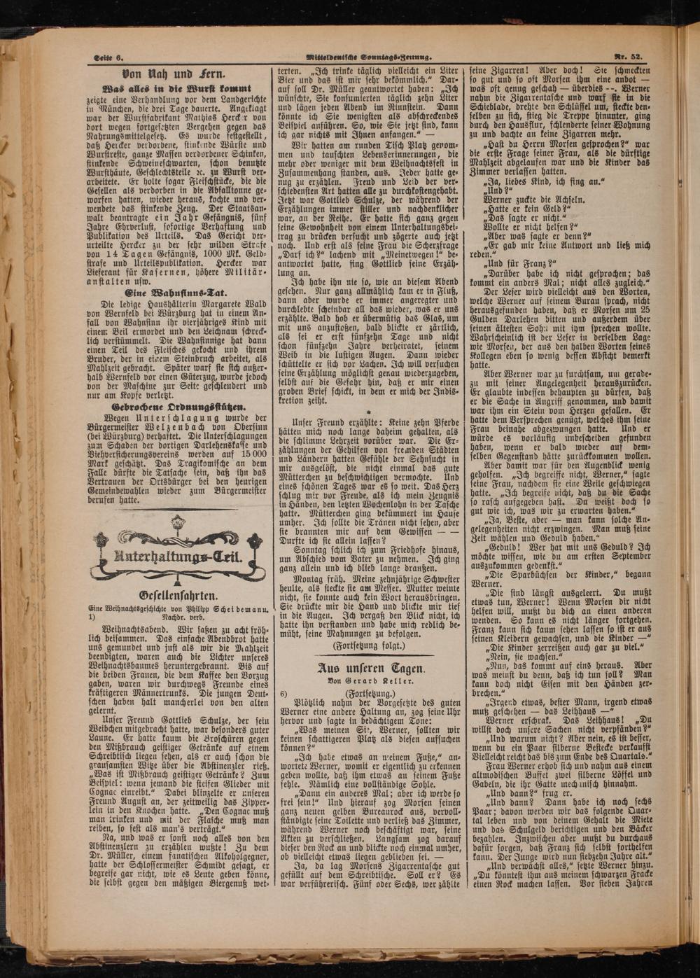 Aber Werner war zu furchtsam, um gerade⸗ zu mit seiner Angelegenheit herauszurücken. Er glaubte indessen behaupten zu dürfen, daß er die Sache in Angriff genommen, und damit war ihm ein Stein vom Herzen gefallen. Er hatte dem Versprechen genügt, welches ihm seine Frau beinahe abgezwungen hatte. Und er würde es vorläufig unbescheiden gefunden haben, wenn er bald wieder auf dem⸗ selben Gegenstand hätte zurückkommen wollen.