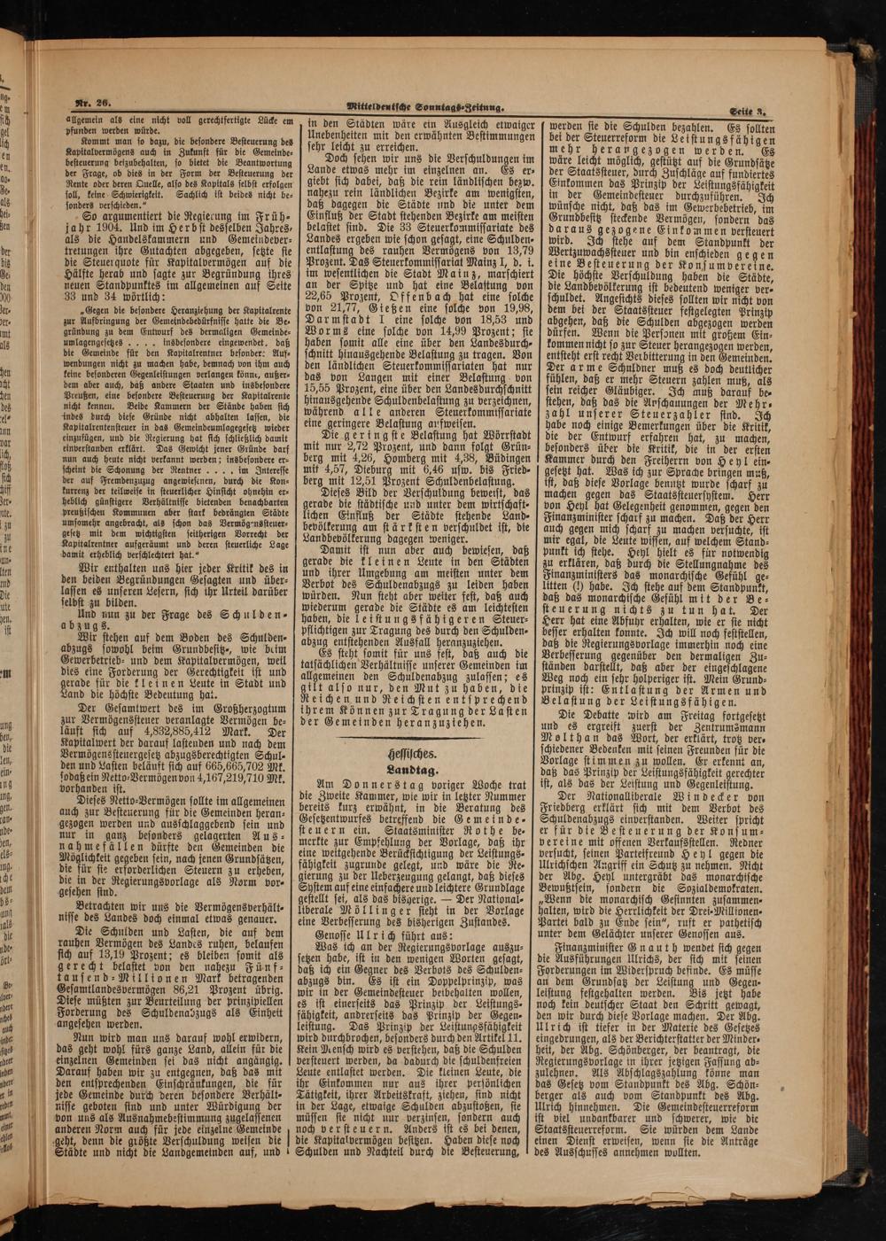 Am Donnerstag voriger Woche trat die Zweite Kammer, wie wir in letzter Nummer bereits kurz erwähnt, in die Beratung des Gesetzentwurfes betreffend die Gemeinde⸗ steuern ein. Staatsminister Rothe be⸗ merkte zur Empfehlung der Vorlage, daß ihr eine weitgehende Berücksichtigung der Leistungs⸗ fähigkeit zugrunde gelegt, und wäre die Re⸗ gierung zu der Ueberzeugung gelangt, daß dieses System auf eine einfachere und leichtere Grundlage gestellt sei, als das bisherige.— Der Nattonal⸗ liberale Möllinger steht in der Vorlage eine Verbesserung des bisherigen Zustandes.