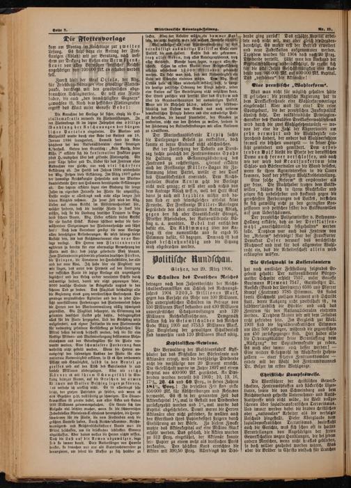 Bei der Fortsetzung der Debatte am Diens⸗ tag suchte zunächst der Zentrumsmann Spahn die Haltung und Gesinnungsänderung des Zentrums zu rechtfertigen. Hierauf erklärte auch der Freistnnige Müller⸗Sagan die Zu⸗ stimmung seiner Partei, wofür er den Dank des Staatssekretärs einerntete. Dem Reichs⸗ parteiller Grafen Arnim geht die Vorlage nicht weit genug; er will aber auch nichts von dem Antrage Ablaß wissen, weil der Herr Graf dann ja auch mit bezahlen müßte und da⸗ von sind er und seinesgleichen absolut keine Freunde. Der Freistnnige Müller⸗ Meiningen begründete den oben erwähnten Antrag Ablaß, Het den sich aber Staatssekretär Stengel,