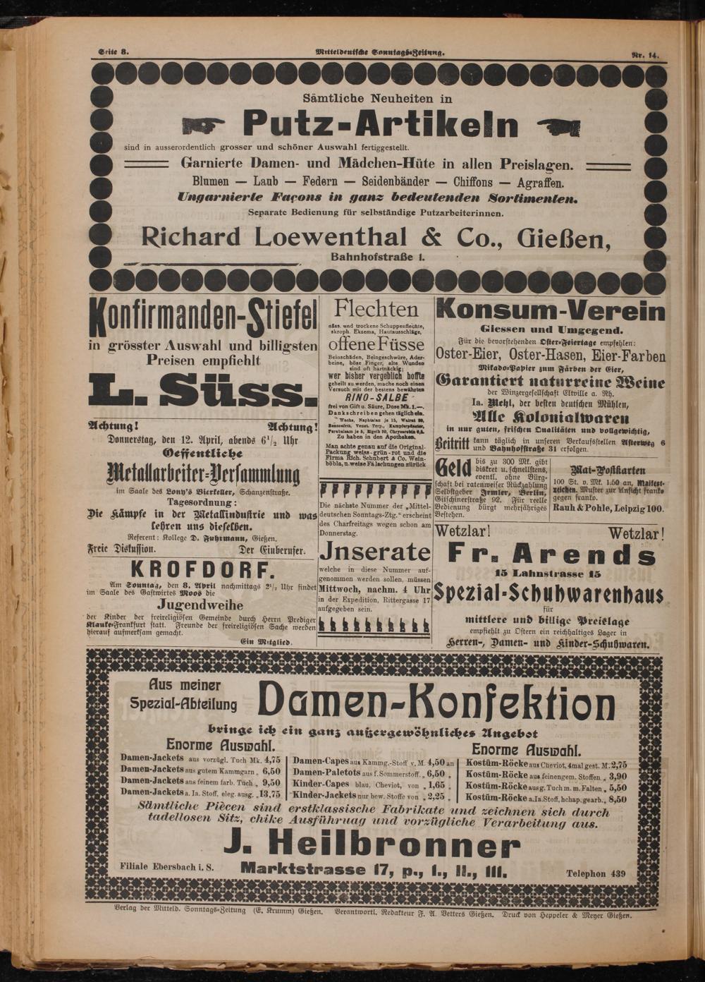 s Verlag der Mitteld. Sonntags⸗ 1 5. n Gießer