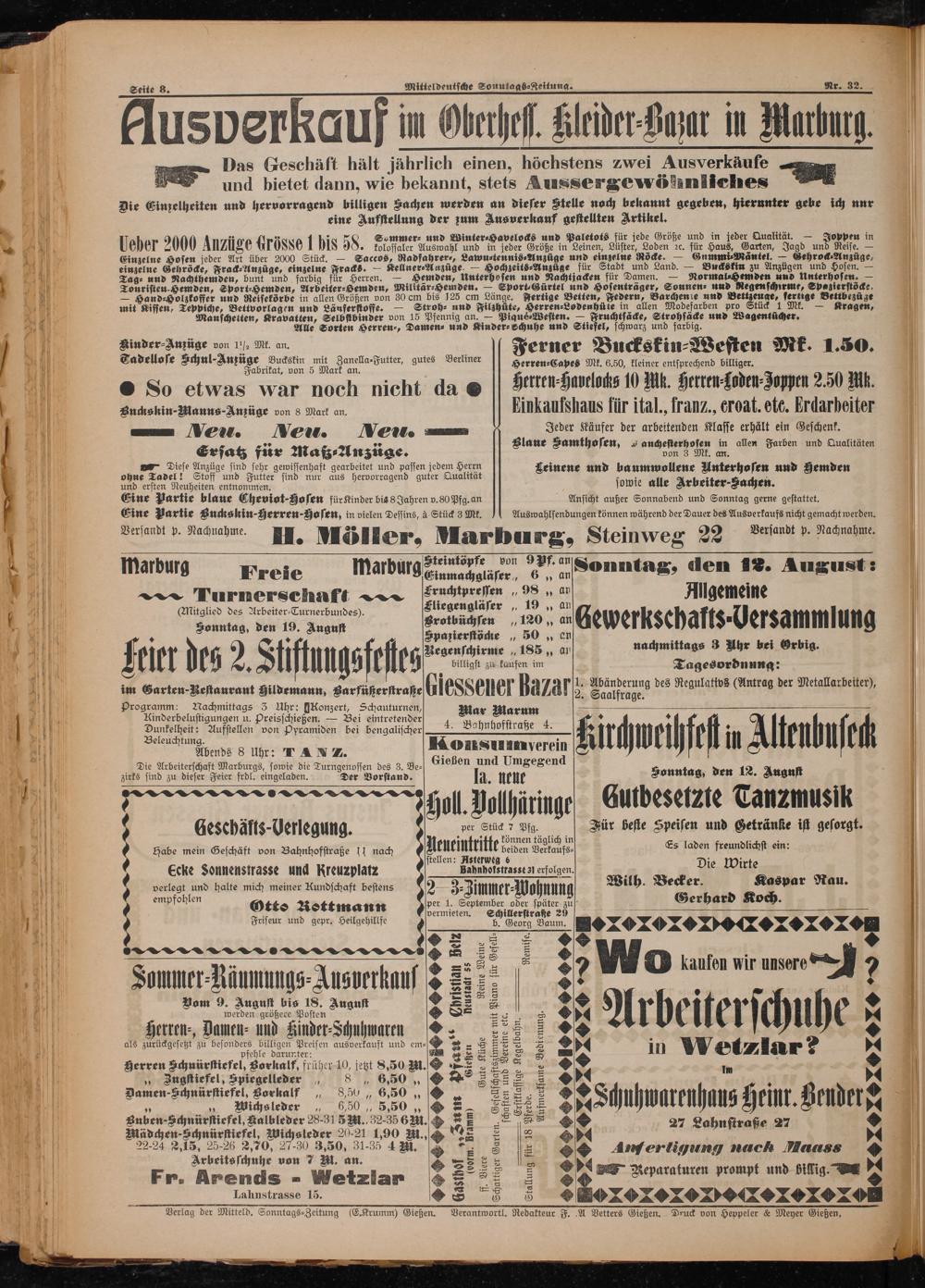 Verlag der Mitteld. Sonntags⸗Zeitung(E. Krumm) Gießen. Verantwortl. Redakteur F. A Vetters Gießen. Druck von Heppeler& Meyer Gießen,