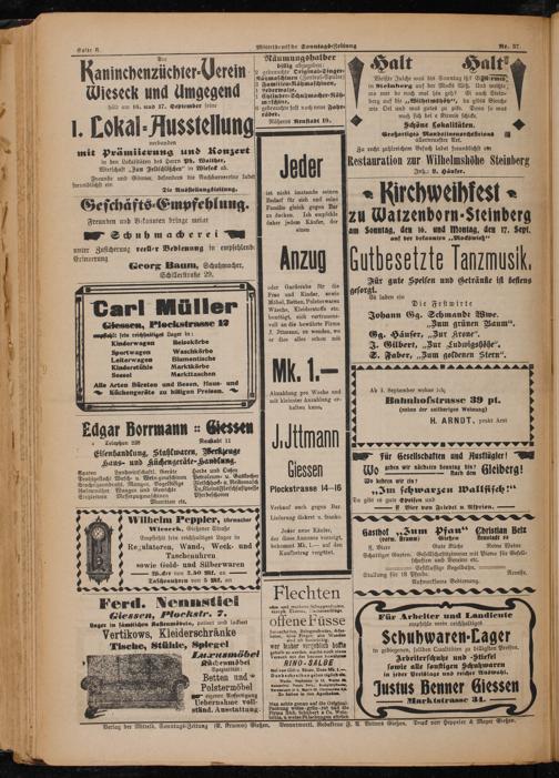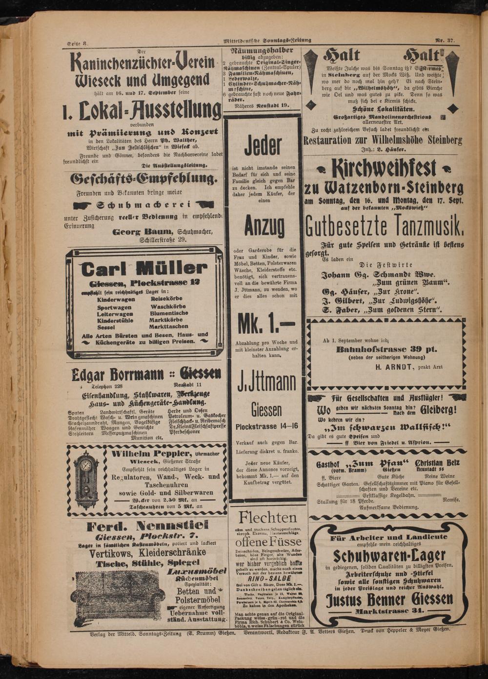 Verlag der Mitteld. Sonntags⸗Zeitung(E. Krumm) Gießen. Verantworkl. Redakteur F. A. Vetters Gießen. Druck von Heppeler& Meyer Gießen.