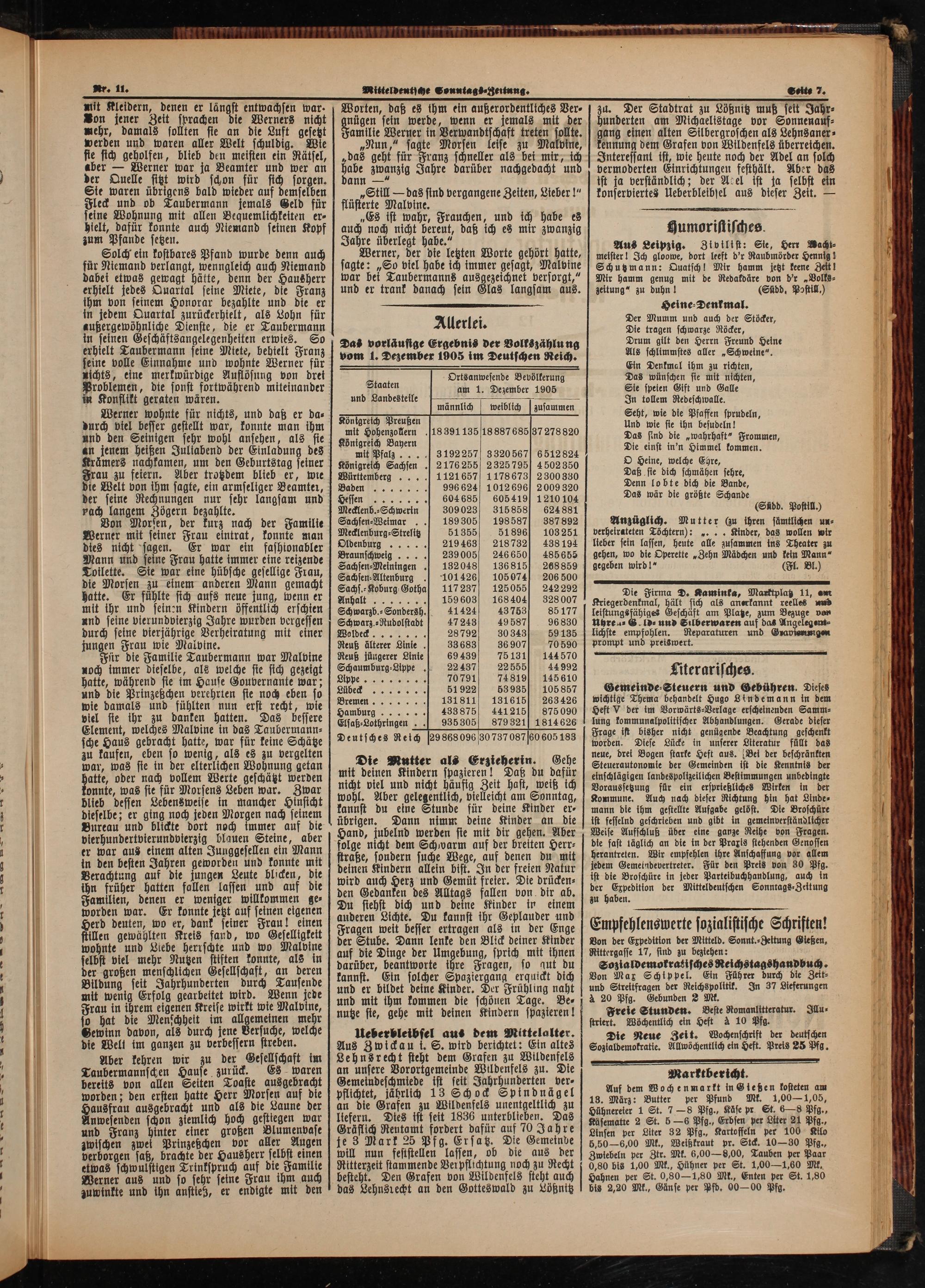 Das vorläusige Ergebnis der Volkszählung vom 1. Dezember 1905 im Deutschen Reich.