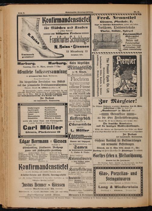Der Gießener Wahlverein veranstaltet Sonntag, den 18. März nachmittags 4 Uhr im Saale des