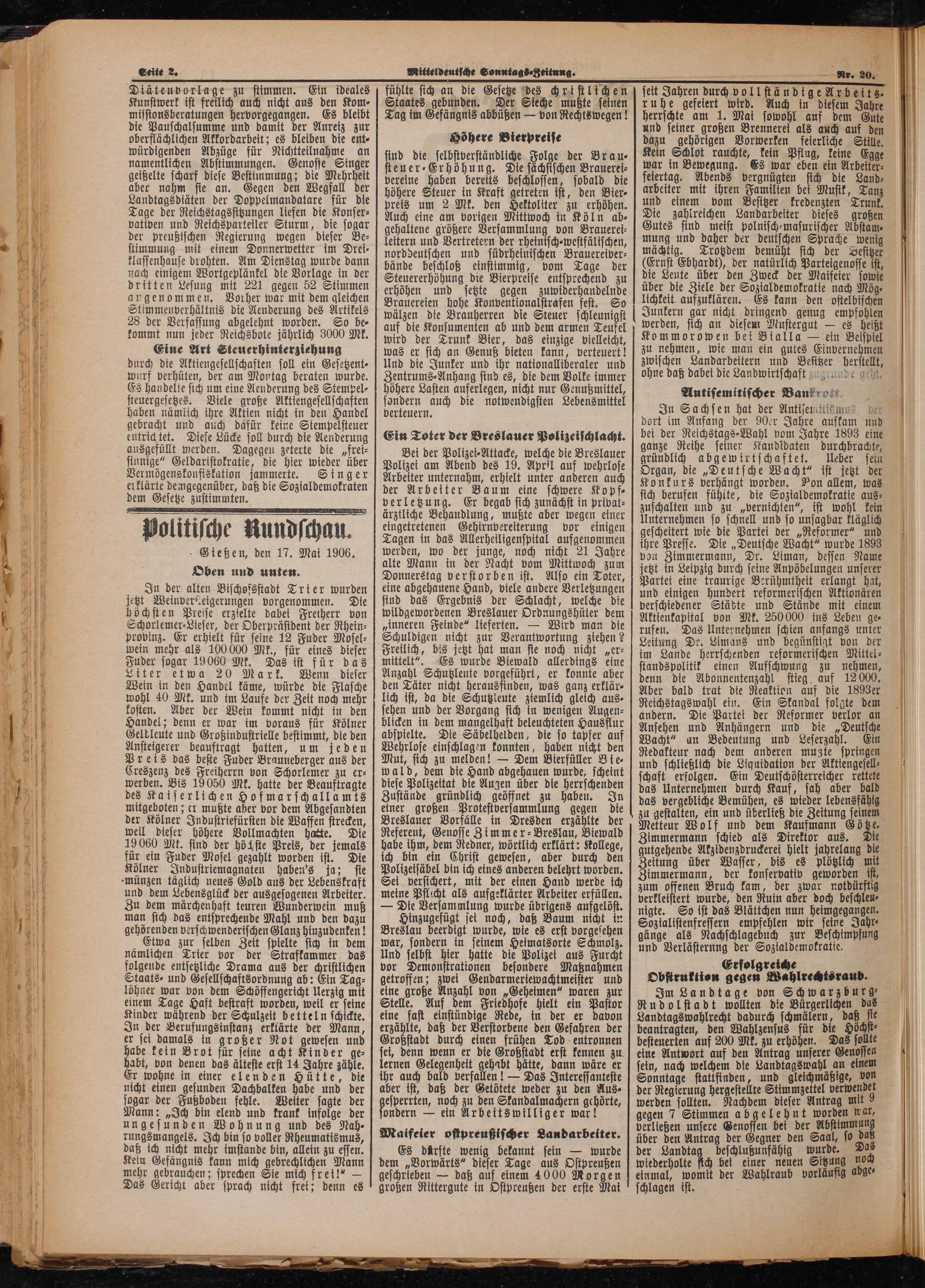 Politische Rundschau. Gießen, den 17. Mai 1906.