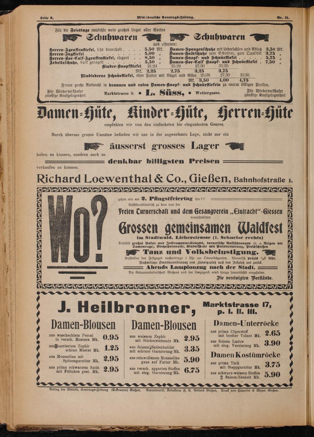 Verlag der Mitteld. Sonntags⸗Zeitung(E. Krumm) Gießen. Perantwortl. Redakteur F. A. Vetters Tießen. Druck von Heppeler& Meyer Gießen.