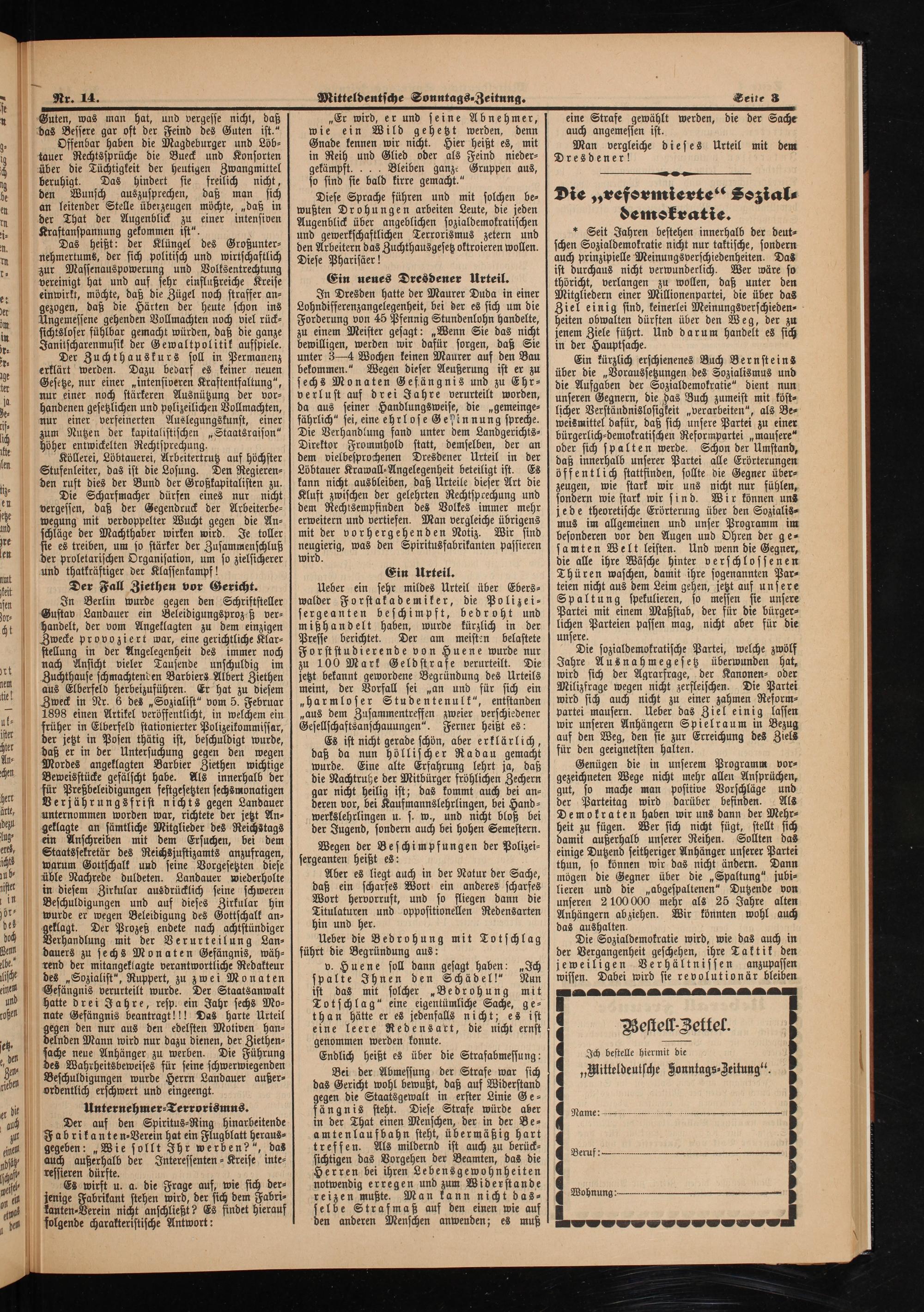 Ich bestelle hiermit die „Mitteldeutsche Jonntags⸗Zeitung“.