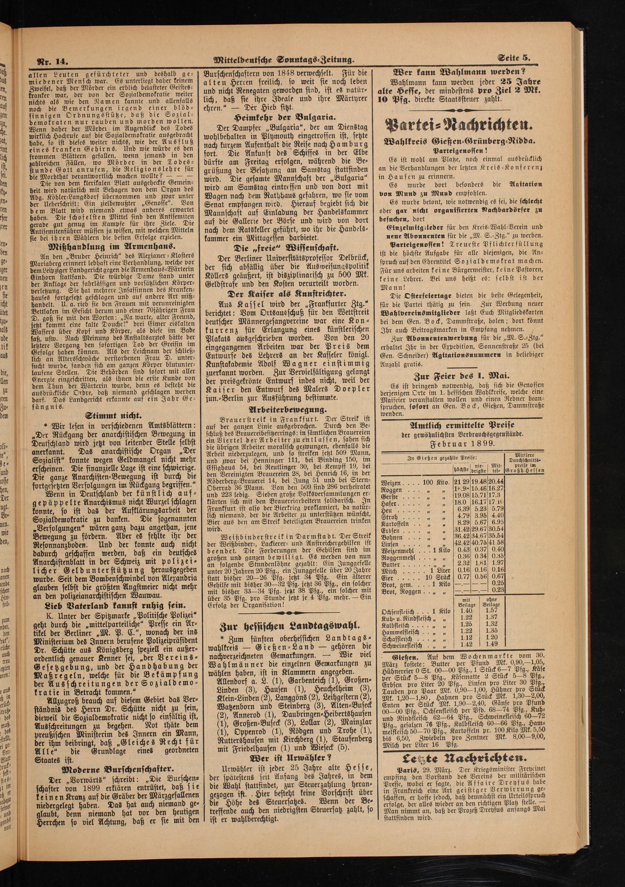 Die Osterfeiertage bieten die beste Gelegenheit, für die Partei thätig zu sein. Zur Werbung neuer Wahlvereinsmitglieder laßt Euch Mitgliedskarten bei dem Gen. Bock, Dammstraße, holen; dort könnt Ihr auch Beitragsmarken in Empfang nehmen.