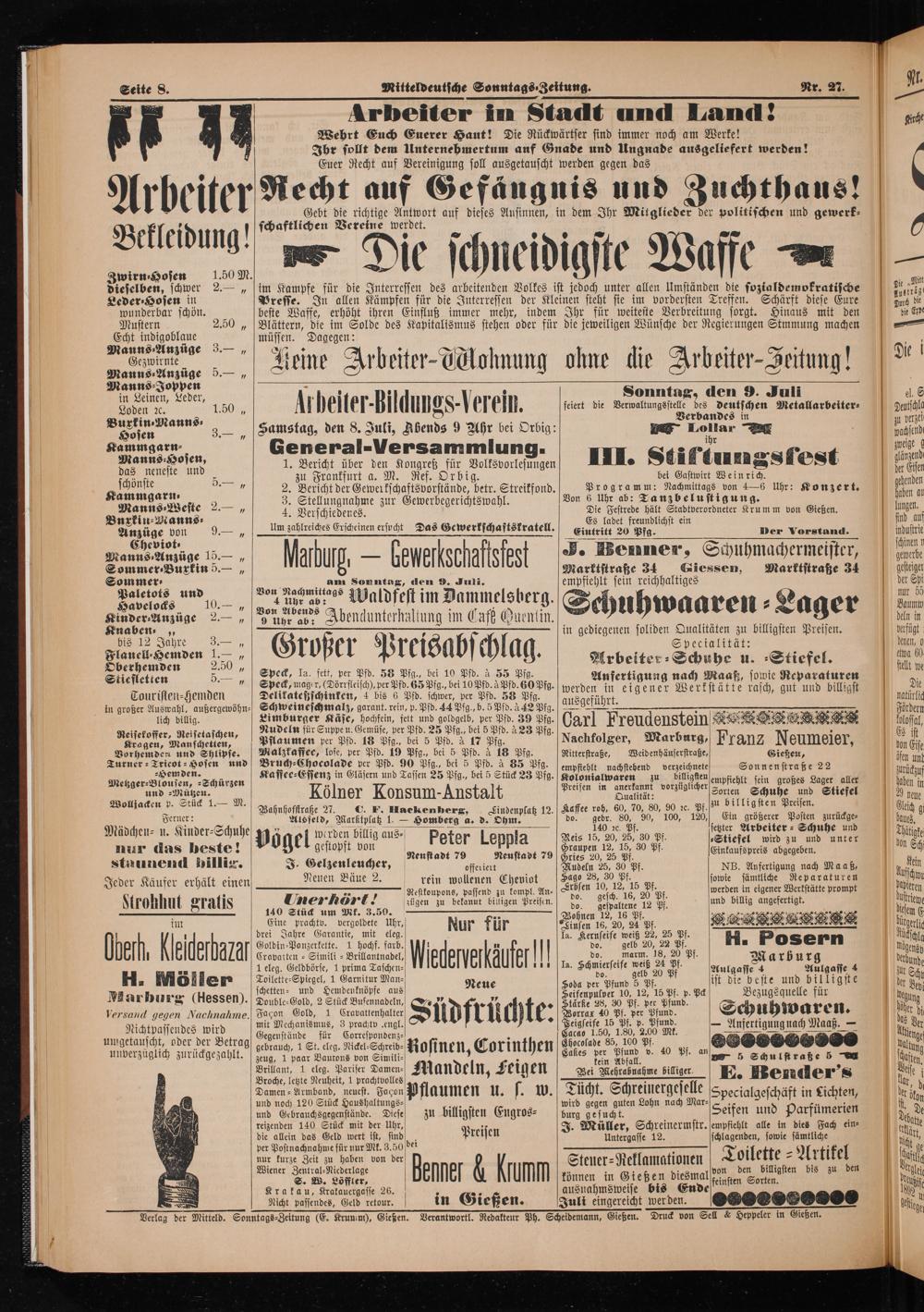 Verantwortl. Redakteur Ph. Scheidemann, Gießen.