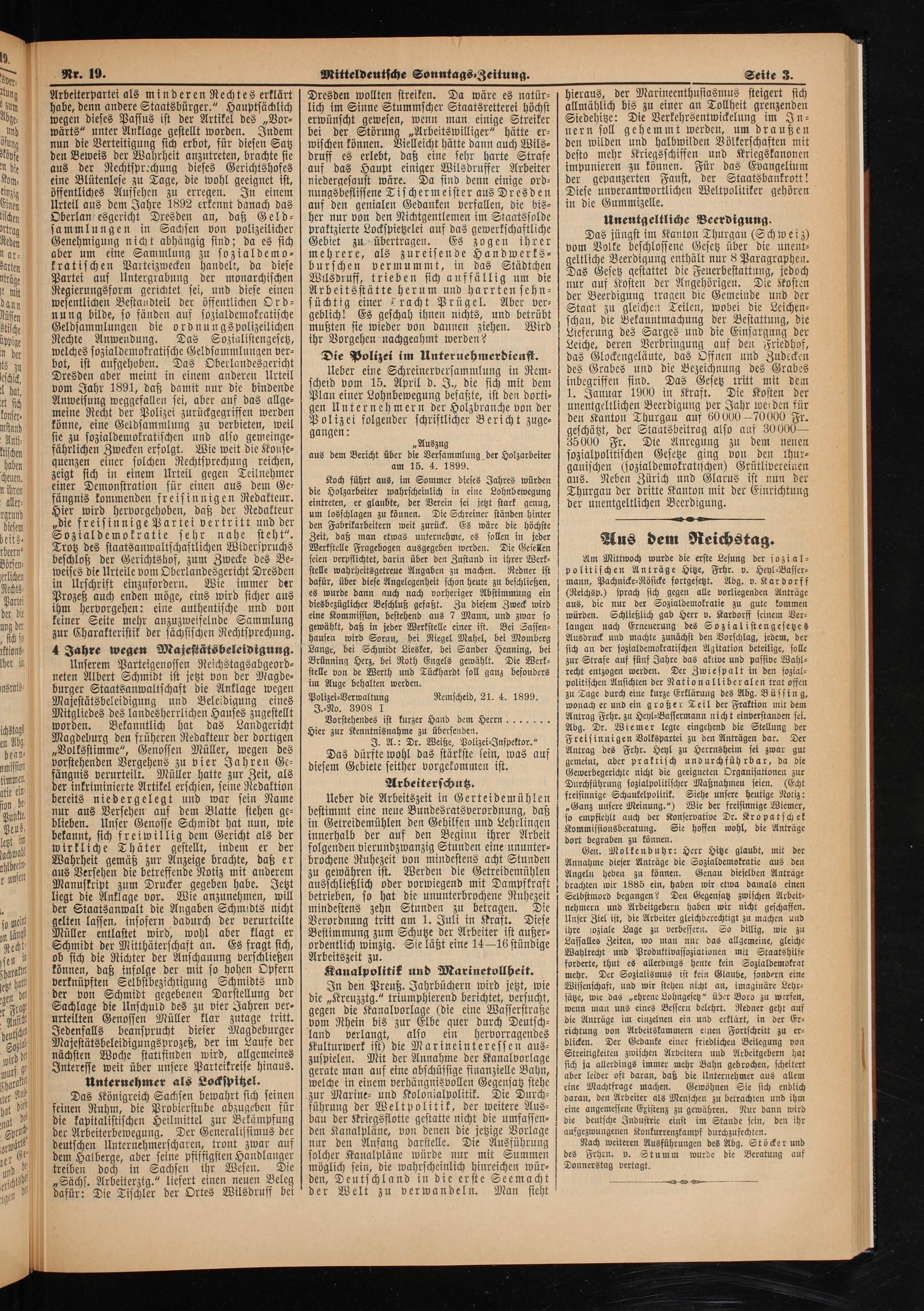 „Auszug aus dem Bericht über die Versammlung der Holzarbeiter am 15. 4. 1899.
