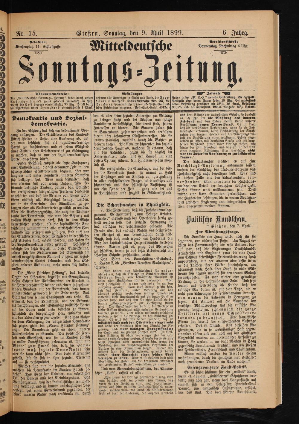 Nr. 15. Gießen, Sonntag, den 9. April 1899.