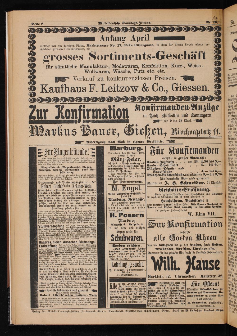 3 Kaufhaus F. Leitzow& Co., Giessen. 3892922222222 2 2222222292225