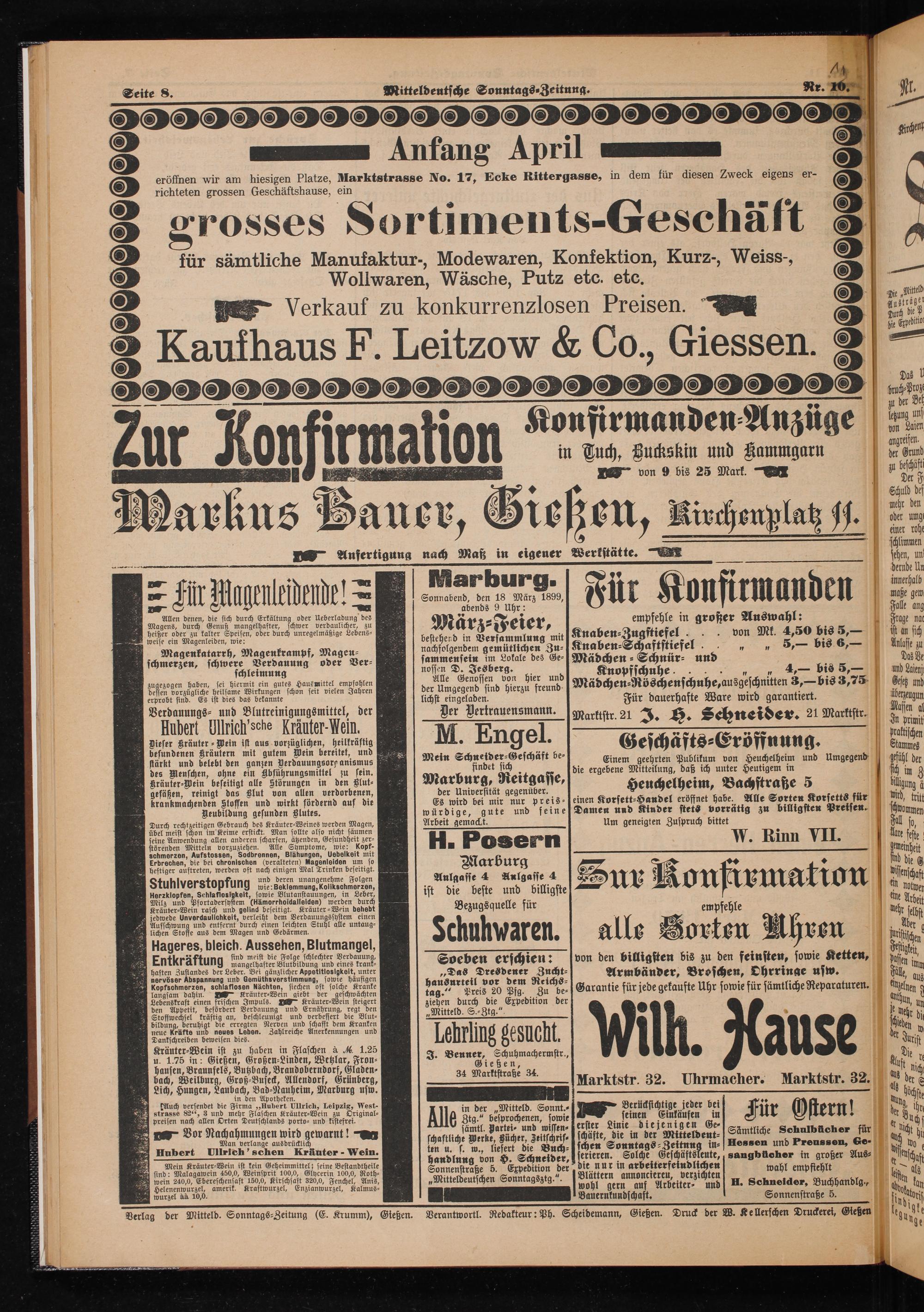 Verantwortl. Redakteur: Ph. Scheidemann, Gießen. Druck der W. Kellerschen Druckerei, Gießen