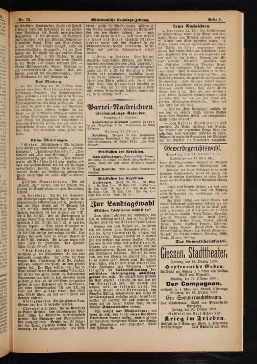 Versammlungs⸗Kalender. Sonntag, 15. Oktober: