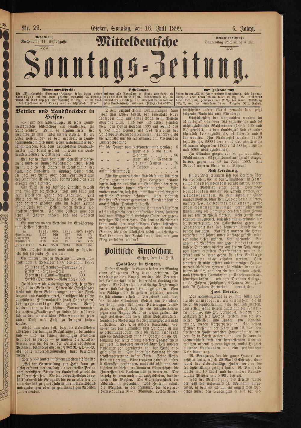 Gießen, Sonntag, den 16. Juli 1899.