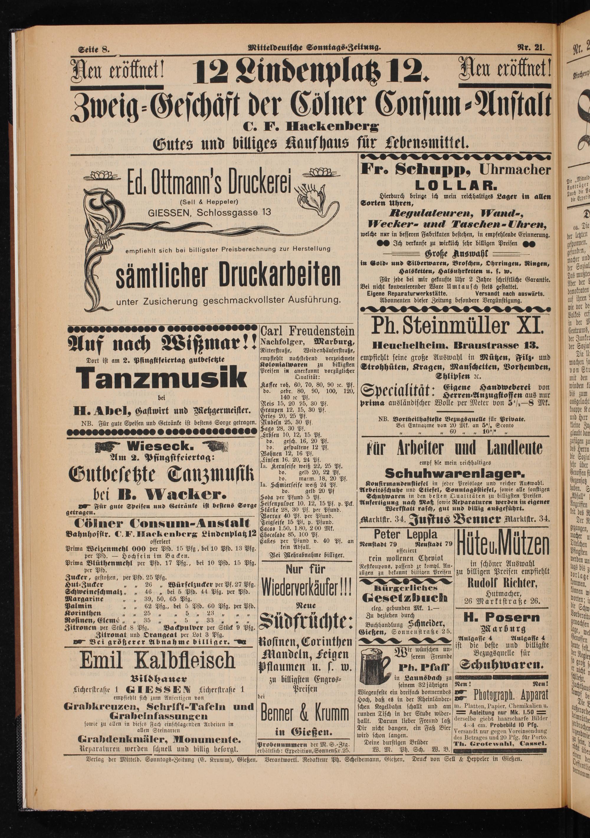 Verantwortl. Redakteur Ph. Scheidemann, Gießen.
