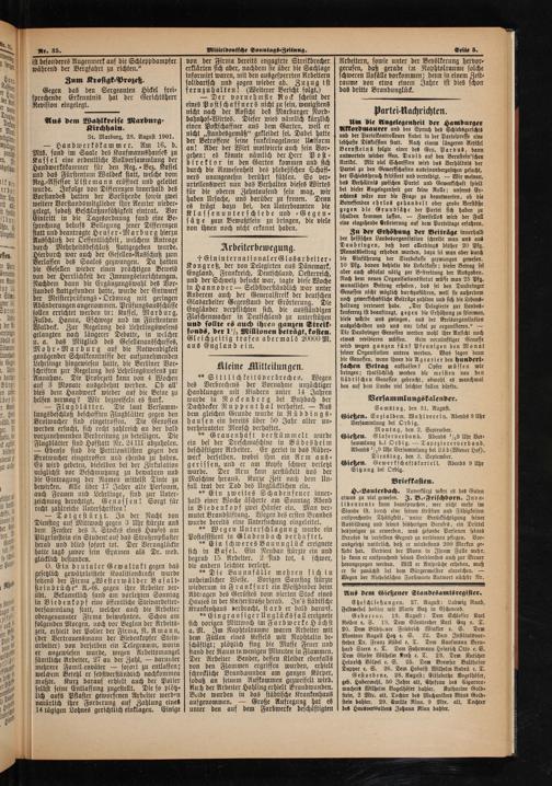 Gießen. Sozialdem. Wahlverein. Abends 9 Uhr Versammlung bei Orbig.