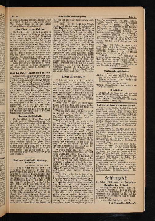 Dem Heizer Christian 19. Dem Geometer Wilhelm 22. Dem Schneider Heinrich 24. Dem Schmied Karl Schneider eine Tochter. Dem Goldarbeiter Eduard Völker eine Tochter. 25, Dem Rangirmelster Balthaser Wisker eln Sohn. Dem Oberleutnant Gustav Stephan eine Tochter. Dem Händler Adolf Sieglinger eine Tochter. Dem Hilfsbremser Heinrich Wilker ein Sohn. 28. Dem Schlosser Wilhelm Krämer eine Tochter.