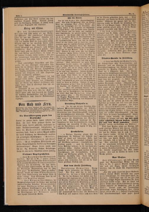 Mit den Friedensverhandlungen ist's heute noch nicht weiter als vor Wochen und Monaten. Die„zivilisierten“ Diplomaten lassen sich von den„dummen“ Chinesen nas⸗ führen, daß man darüber lachen könnte, wenn nicht das deutsche Volk die Zeche zahlen müßte. Kürzlich hieß es, der chinesische Kaiser wolle vor lauter Schreck über Waldersee's Sähel⸗ rasseln schleunigst von Singanfu nach Peking zurückkehren. Heut' liest man's anders. Der Kaiser sowie auch die Kaiserin Witwe weigern sich, nach Peking zurückzukehren, so lange es die fremden Truppen besetzt halten.— Die von deu auswärtigen Gesandten geforderten Be⸗ strafungen sind auch nicht so leicht durch⸗ geführt. i