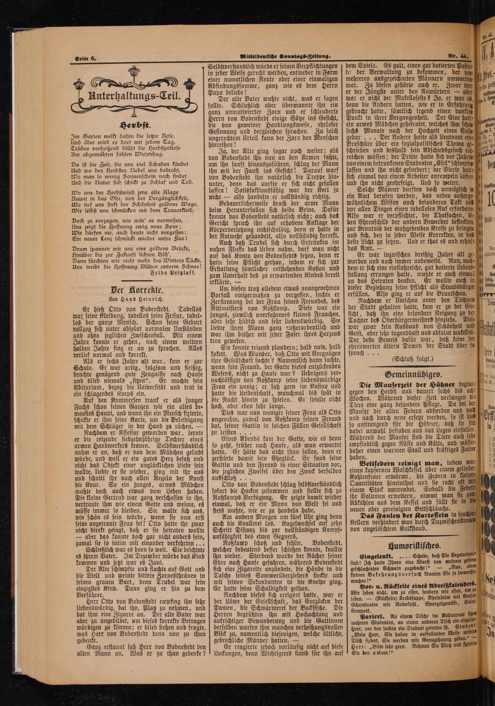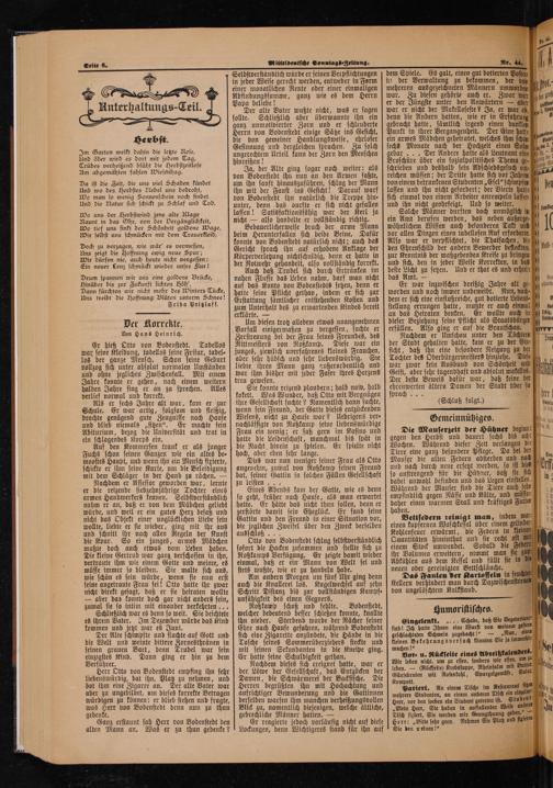 war zwar kein Ausbund von Schönheit und Geist, aber sehr tugendhaft und absolut makellos, Der beste Beweis dafür war, daß keine der ehrenwerten ältern Damen der Stadt über see sprach. N rr! (Schluß folgt.) at u rech Gemeinnütziges.