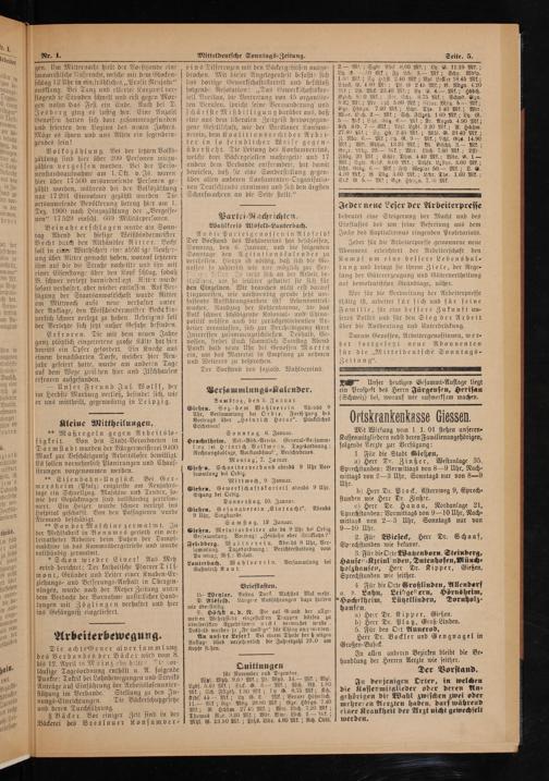 Soz. dem. Wahlverein. Abends 9 Versammlung bei Orbis. Fortsetzurg des „Heinrich Heine“. Pünktliches
