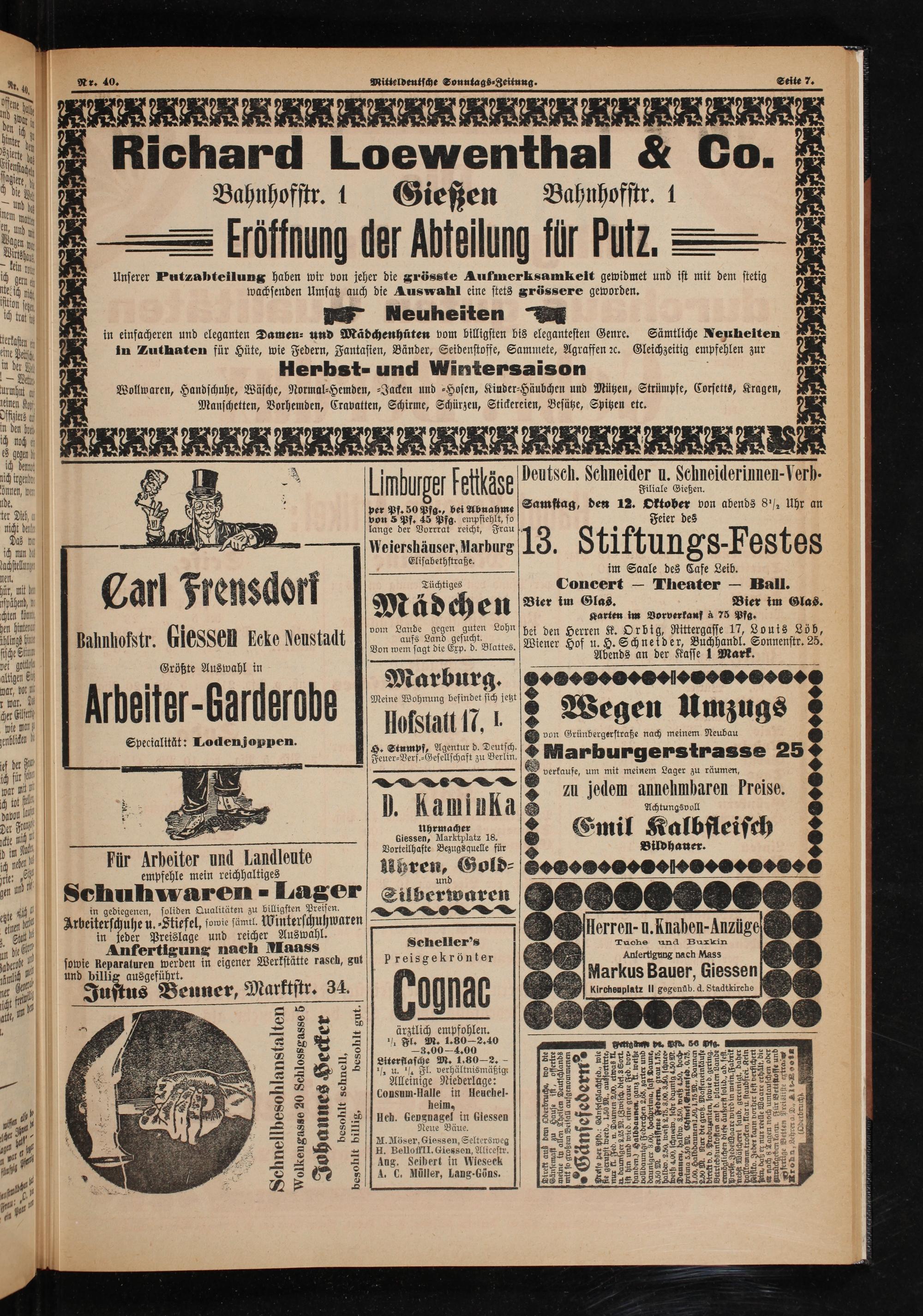 heim, ch. Gepgnagel in Giessen Neue Bäue. M. Möser, Giessen, Seltersweg HE. Belloff II. Giessen, Alicestr. Aug. Seibert in Wieseck A. C. Müller, Lang-Göns.