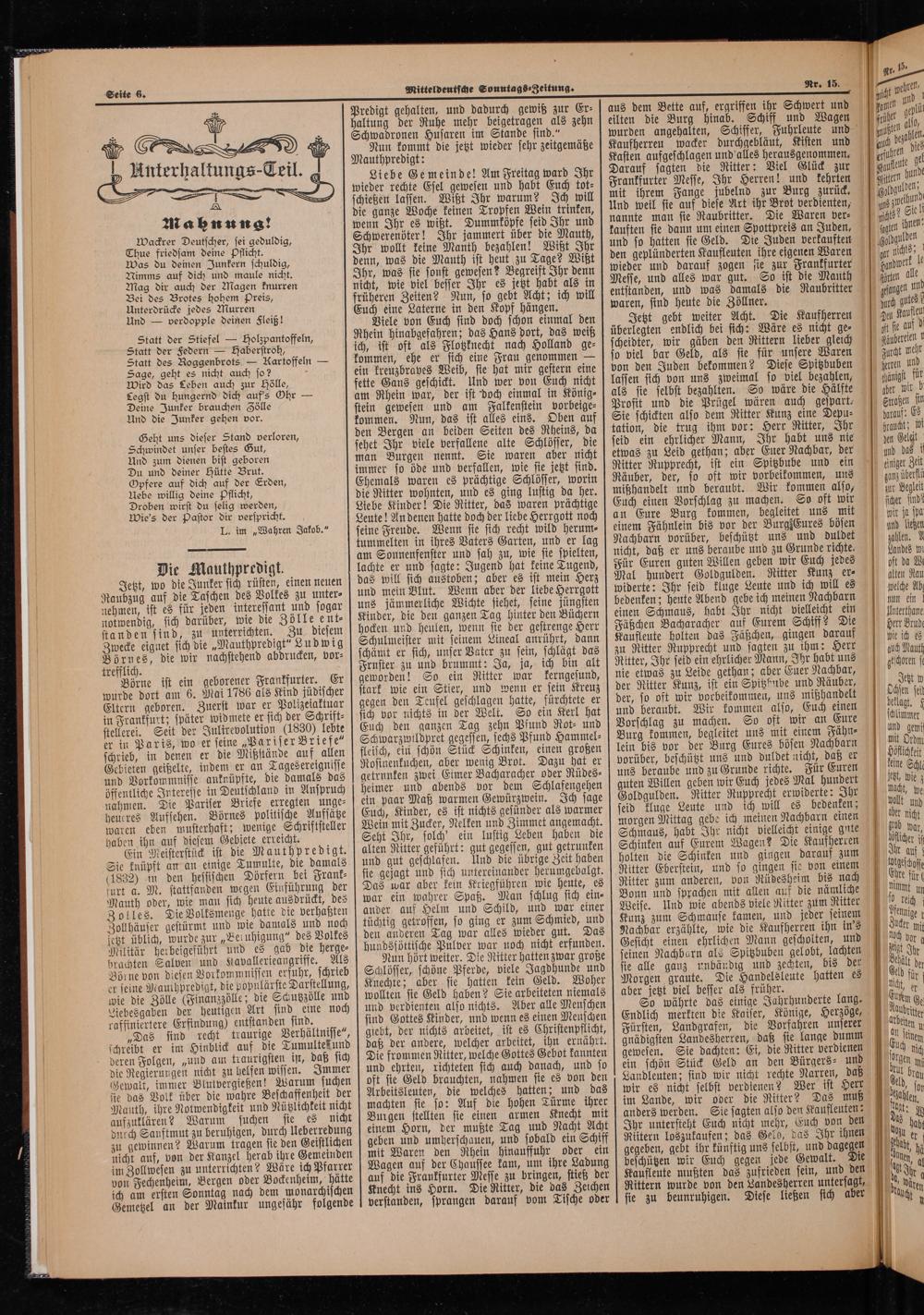 Mitteldeutsche Sonntags⸗Zeitung.