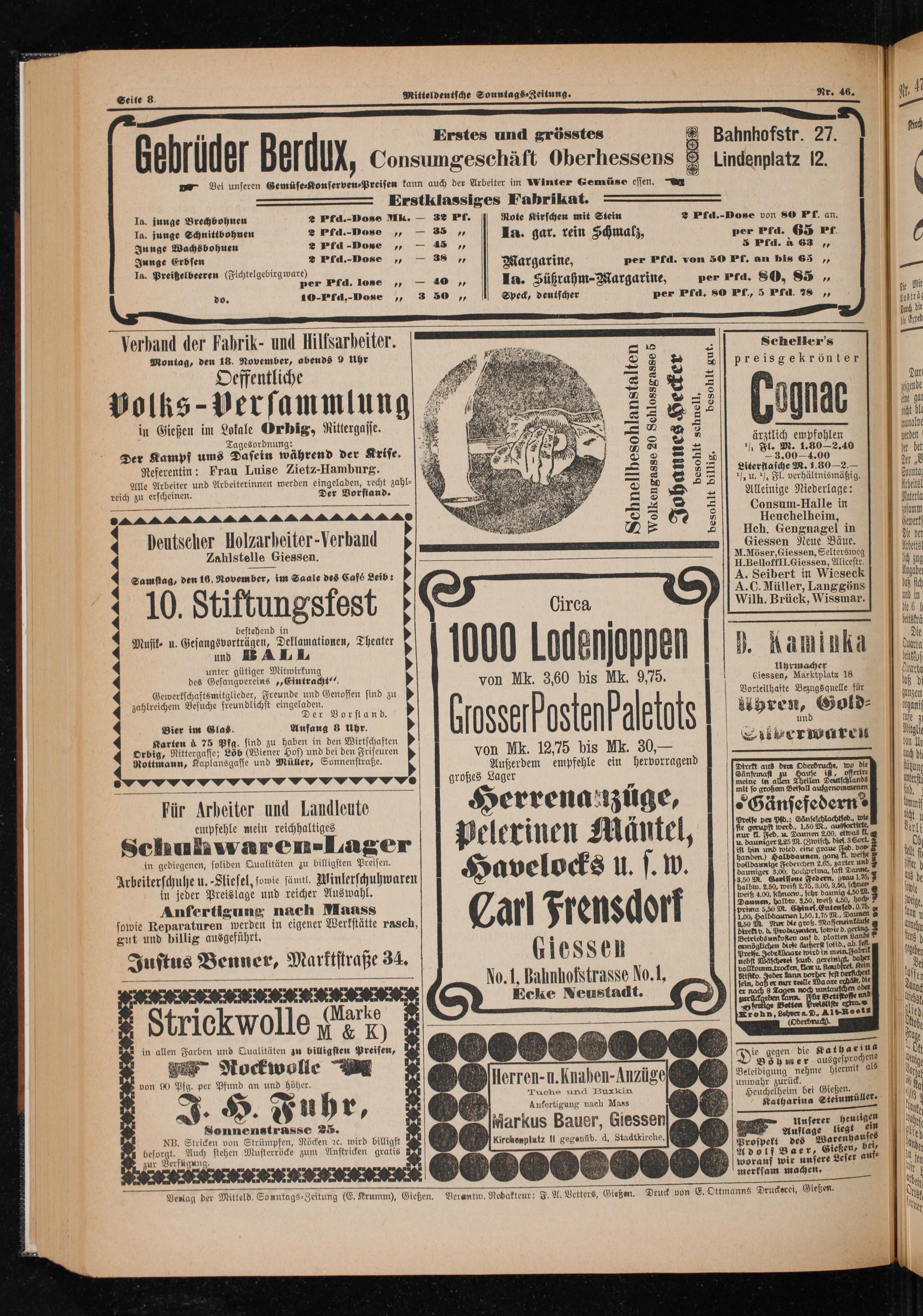 Verantw. Redakteur: F. A. Vetters, Gießen.