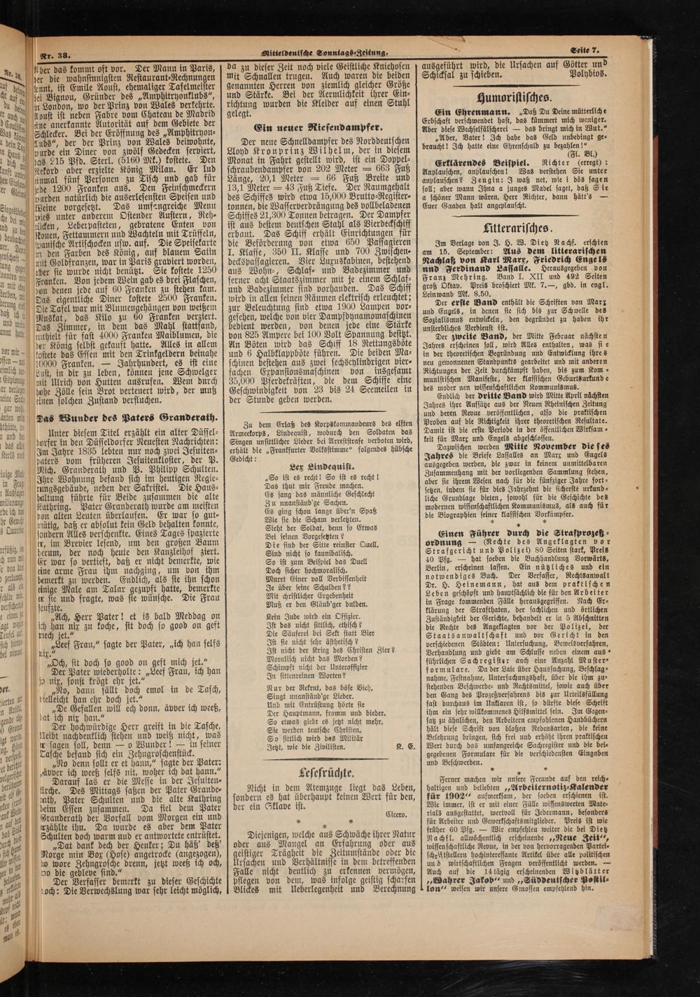 Ferner machen wir unsere Freunde auf den reich⸗ haltigen und beliebten„Arbeiternotiz⸗Kalender für 1902“ aufmerksam, der soeben erschienen ist. Wie immer, ist er mit einer Fülle wissenswerten Mate⸗ rials ausgestattet, wertvoll für Jedermann, besonders für Arbeiter und Gewerkschaftsmitglieder. Preis ist wie früher 60 Pfg.— Wir empfehleu weiter die bei Dietz Nachfl. allwöchentlich erscheinende„Neue Zeit“, wissen schaftliche Revue, in der von hervorragenden Partei⸗ schrätstellern hochinteressante Artikel über alle politischen un d wirtschaftlichen Fragen veröffentlicht werden.— Auch auf die 14 tägig erscheinenden Witzblätt er „Wahrer Jakob“ und„Süddeutscher Postil⸗