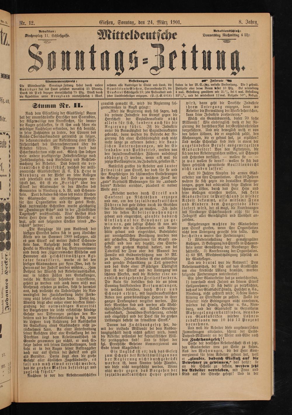 Die Mitteldeutsche SonntagsZeitung kostet durch unsere] nehmen alle Austräger in Stadt und Land, die finden in der M. S.⸗Ztg. weiteste Verbreitung. Die 5 gespalt. Austräger frei ins Haus geliefert monatlich 25 Pfennig. Expedition in Gießen, Sonnenstraße 25, die] Petitzeile oder deren Raum bostet 10 Pfg. Bei mindestens Durch die Post bezogen vierteljährlich 75 Pfg. Direkt durch] Druckerei Schloßgasse 13; jede Postanstalt und[4 mal. Bestellung gewähren wir 25%% bei 6 mal. Bestellung die Expedition unter Kreuzband vierteljährlich 1 Mark.] jeder Landbriefträger entgegen.(P.⸗Z.⸗K. 4814) 331½% und bei mindestens 12 mal. Aufgabe 50% Rabatt.