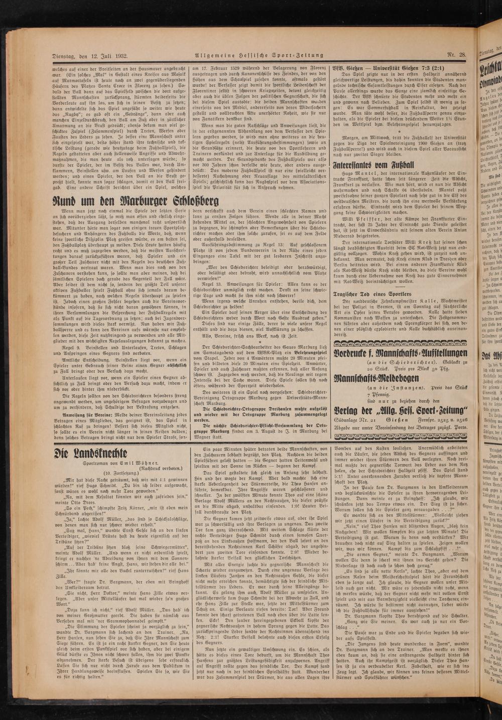 Verlag der„Allg. Hess. Sport- zeitung“ Südanlage Nr. 21 Gießen Fernspr. 2828 u. 2826 Abgabe nur unter Voreinsendung des Betrages zuzügl. Porto.