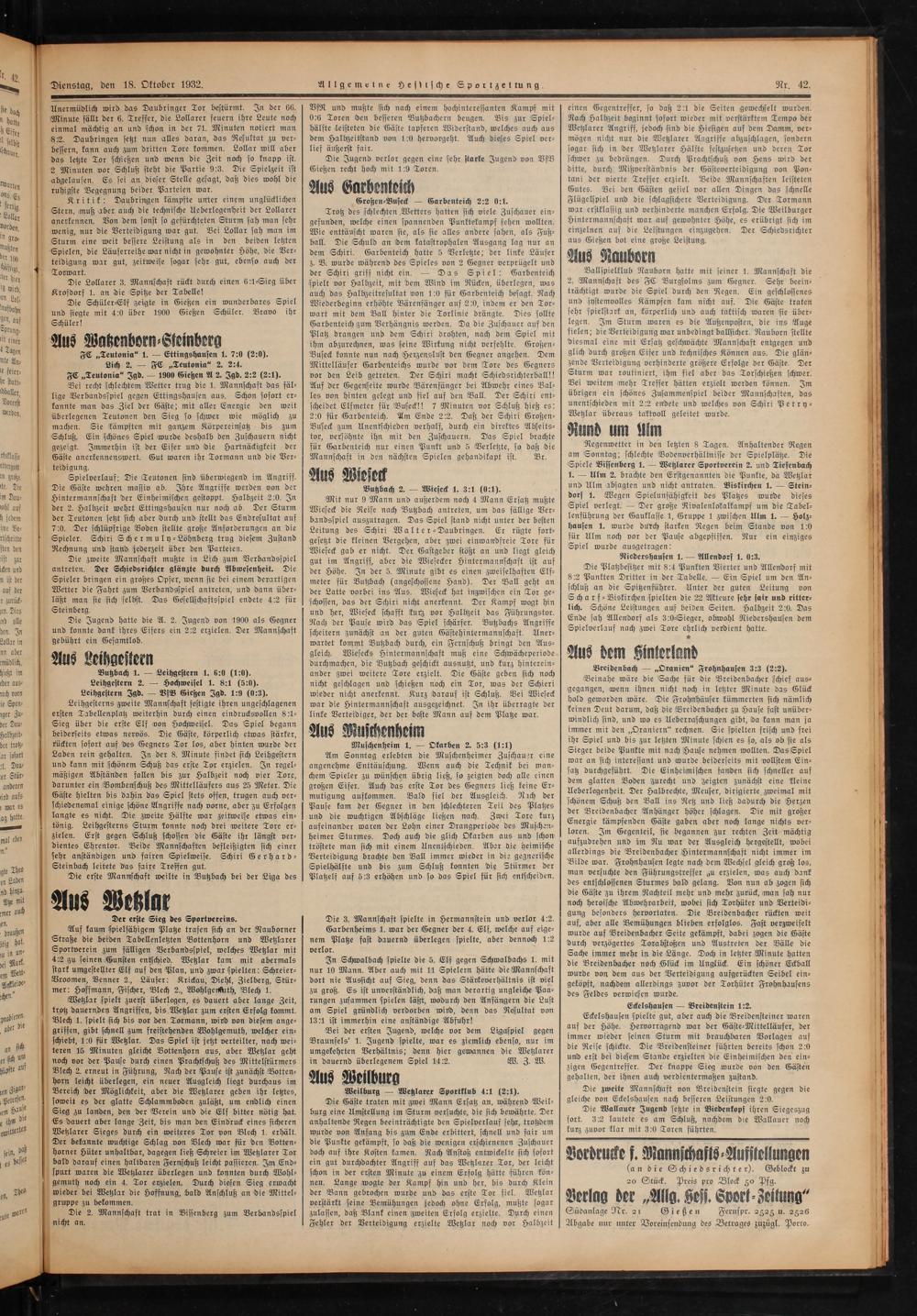 FC„Teutonia“ 1.— Ettingshausen 1. 7:0(2:0). Lich 2.— FC„Teutonia“ 2. 2:4.