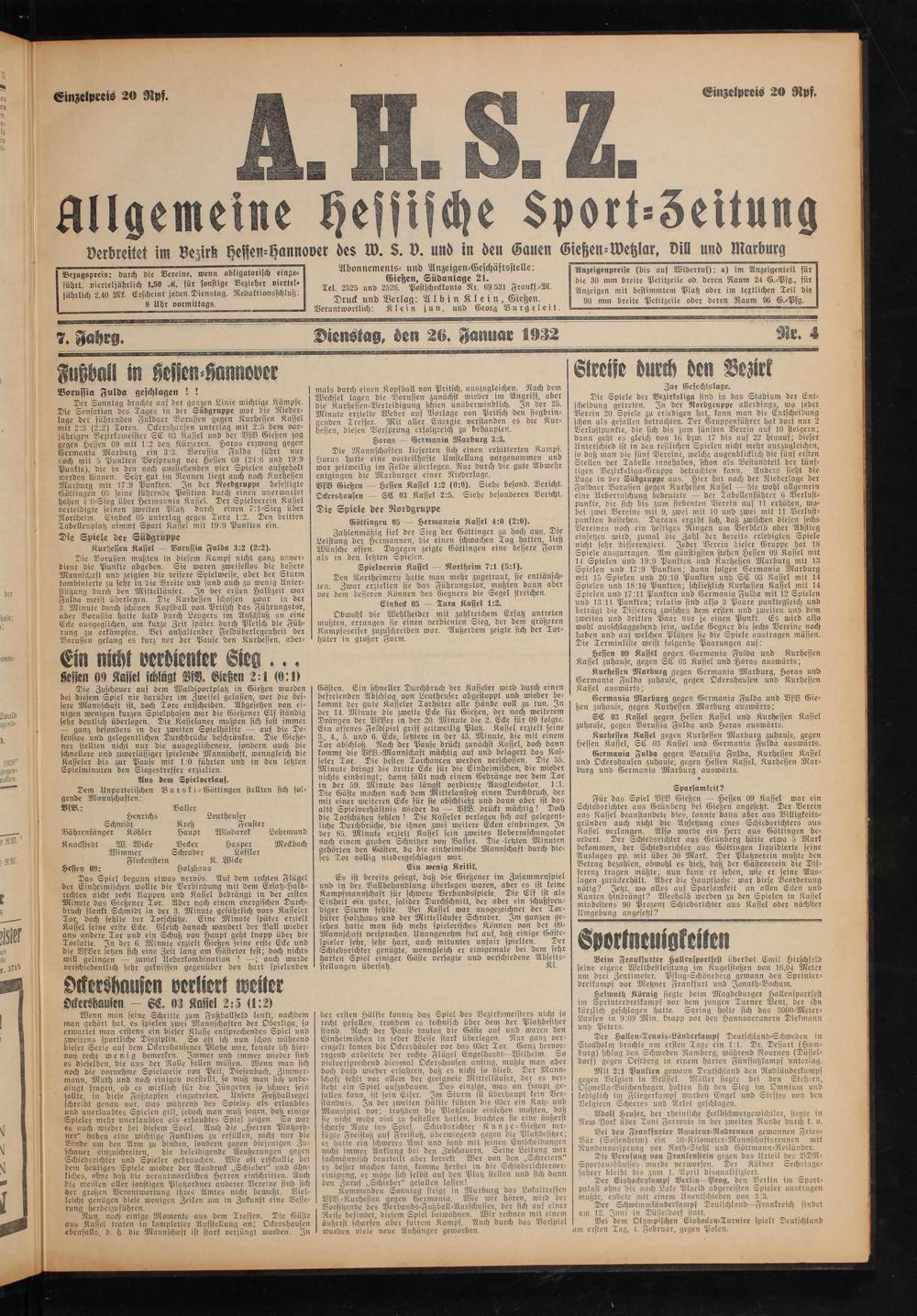 Druck und Verlag: Albin Klein, Gießen. Verantwortlich: