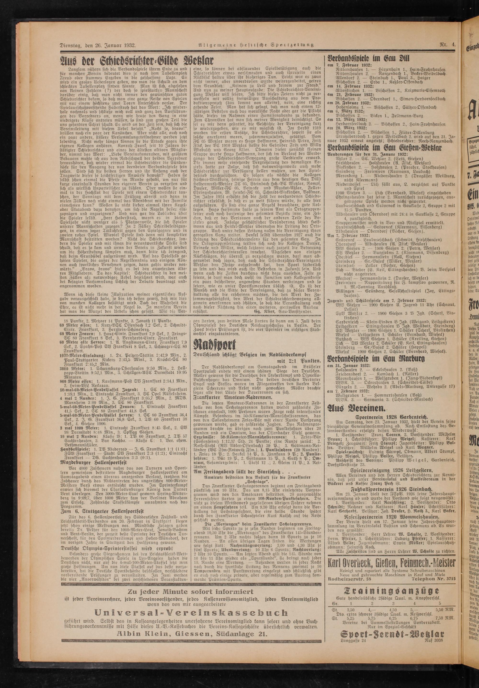 Am Samstag, den 23. Januar 1932, hielt der Verein seine diesjährige Generalversammlung ab. Nach Entlastung des Ge- samtvorstandes erfolgte dessen Wiederwahl: