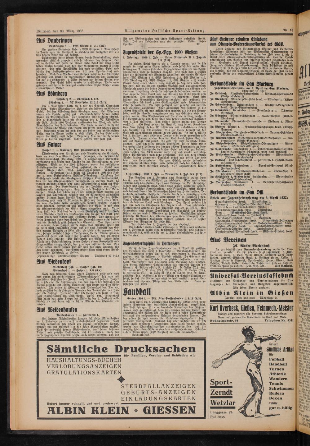 Verbandsjpiele im Gau Marburg