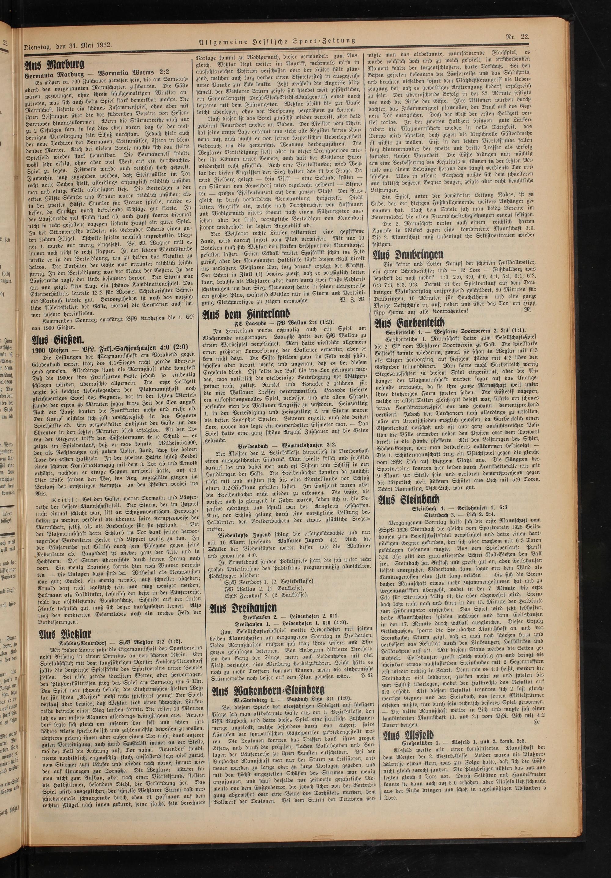Platze sah man altbekannte Gäst VfR Butzbach, und hatte dieses Spiel eine stattliche Zuschauer menge angelockt, welche besonders durch das äußerst fair Kämpfen der sympathischen Gästesportler zufriedengestellt wa ren. Die Teutonen konnten das Treffen dank ihres große Eifers, und durch die präzisen, flachen Ballabgaben und Vor lagen der Läuferreihe zu ihren Gunsten entscheiden. Bei de