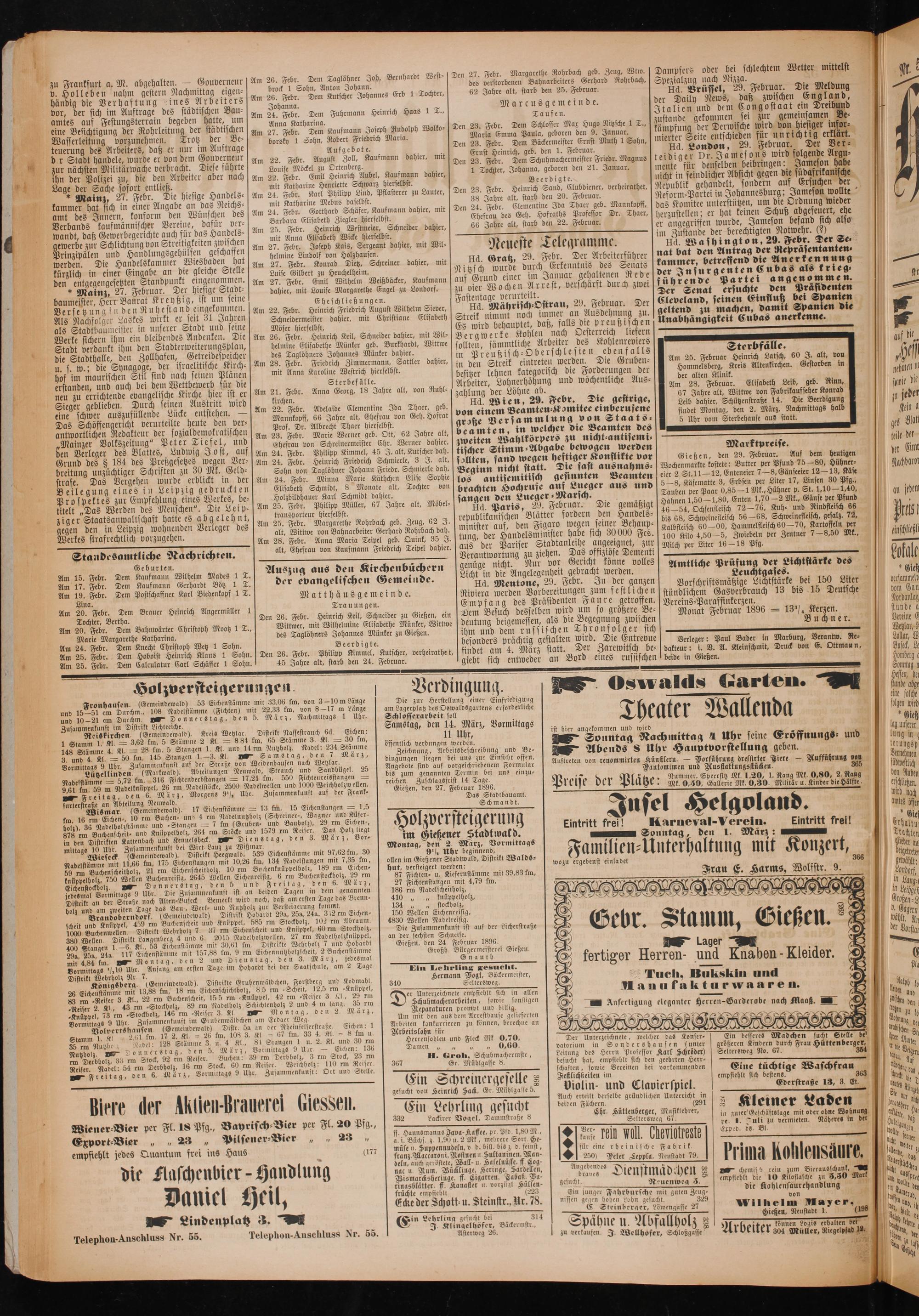 Gießen, den 27. Februar 1896.