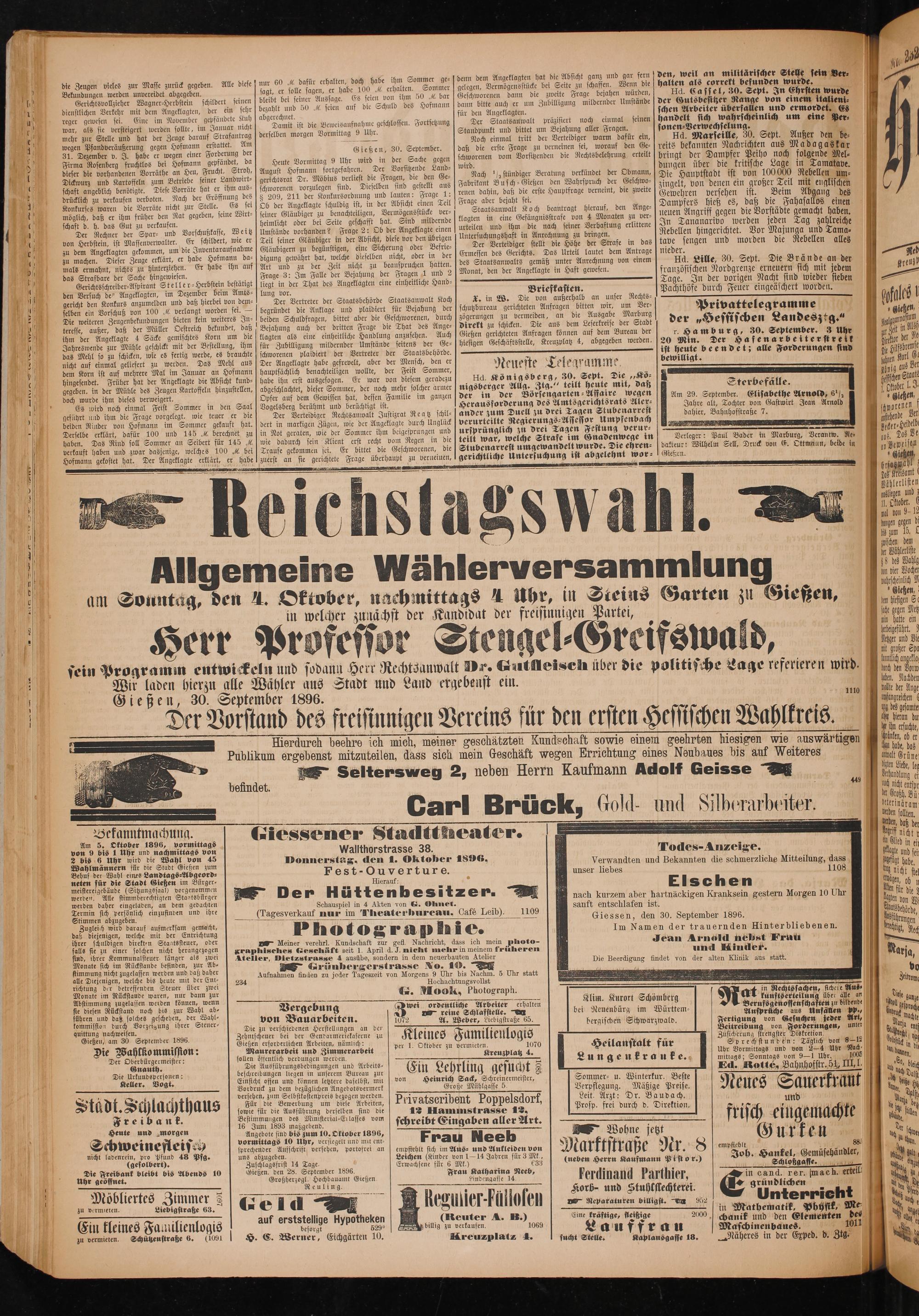 Wir laden hierzu alle Wähler aus Stadt und Land ergebenst ein. Gießen, 30. September 1896.