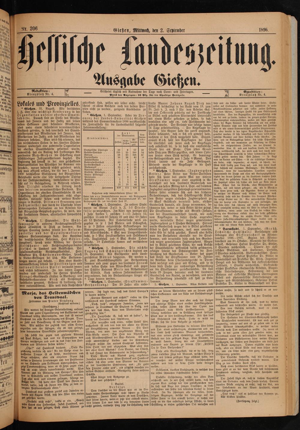 Gießen, 1. September. Ueber die Fre⸗ quenz der Landes⸗Universität Gießen während des Sommersemesters 1896 veröffentlicht die Zentralstelle für die Landesstatistik folgende Zusammenstellung: