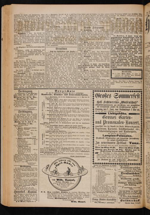 Sonntag, den 7. Juni, von Nachmittags 3 Uhr an,