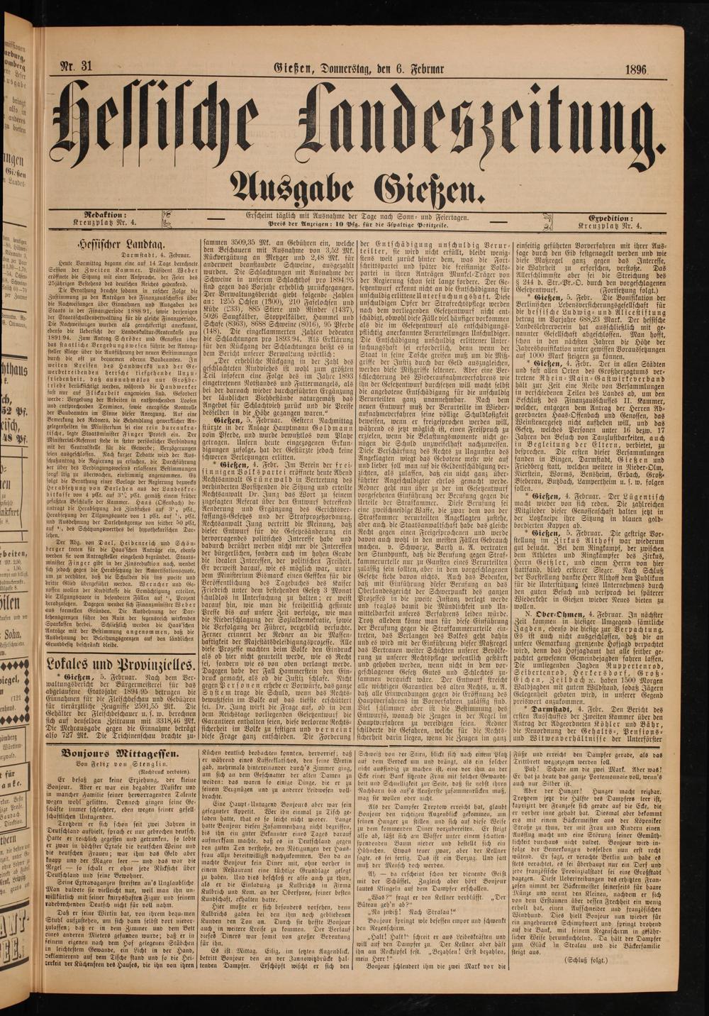 Gießen, Donnerstag, den 6. Febrnar