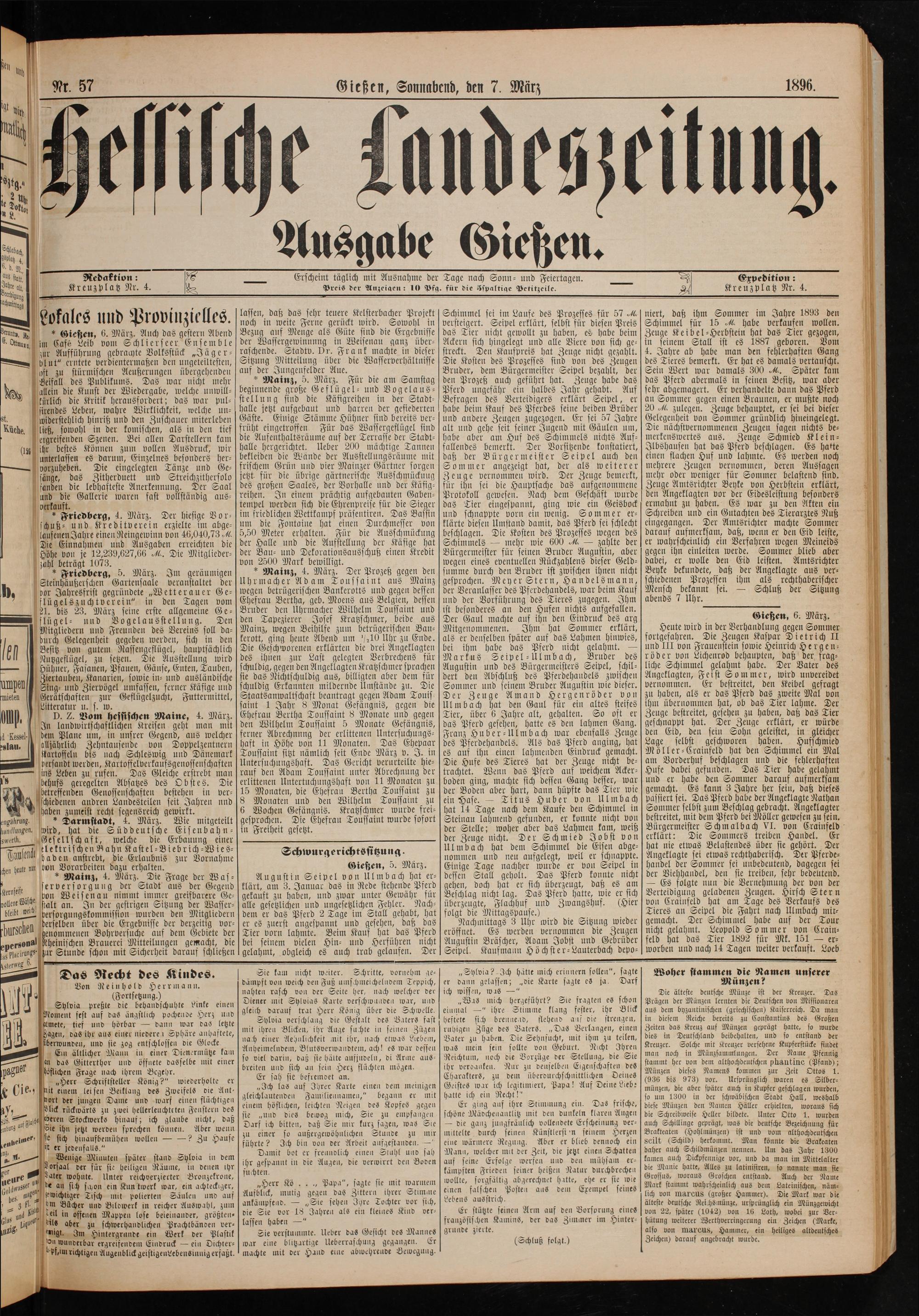 Preis der Anzeigen: 10 Pfg. für die Sspaltige Petitzeile.