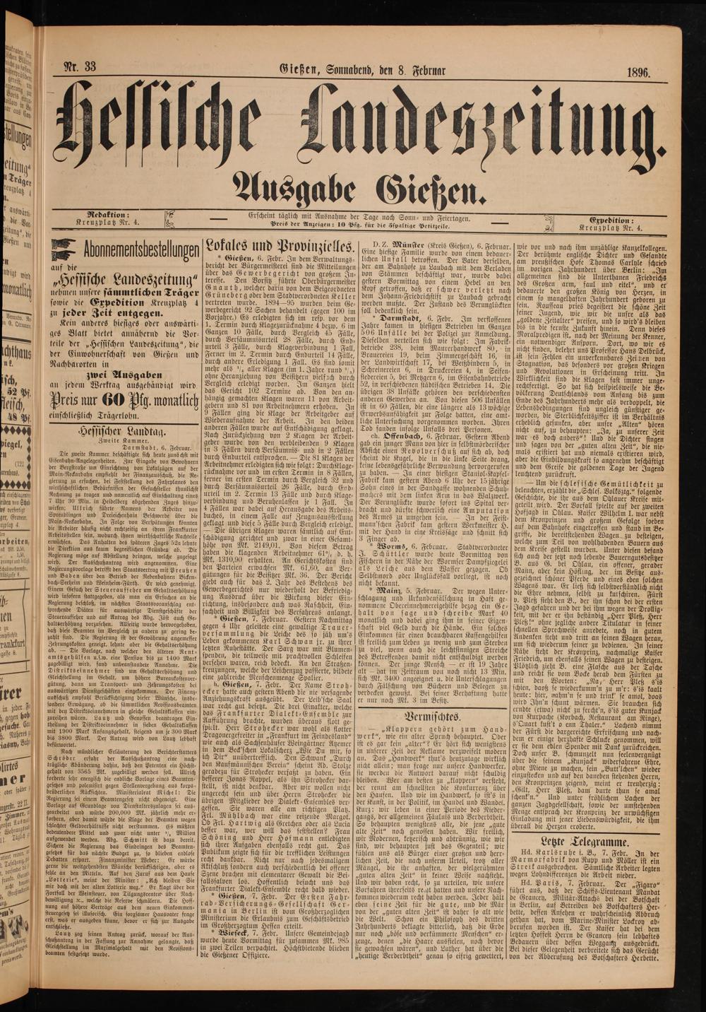 Gießen, Sonnabend, den 8. Februar