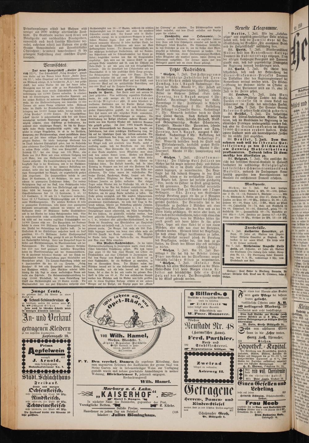 J. Arnold, 3 F. T. Den verehrl. Damen die ergebene Mitteilung, dass zum Schipka pass. zum ungenirten Erlernen des Radfahrens der grosse Saal von eee ee Steins Garten mir in liebenswürdiger Weise zur Verfügung Seceasde. Fo N und nehme geschätzte Anmeldungen in meiner 2 5 ohnung, Bleichstrasse 7, jederzeit entgegen. Städt.— ch lachthaus Hochachtungsvoll Freibank. Wiln. Hamel. Heute und morgen Ochsenfleisch Marr ier e.. Lain. nicht ladenrein, pro Pfund 95— K A S E R N 0 F 56— EIL 2——