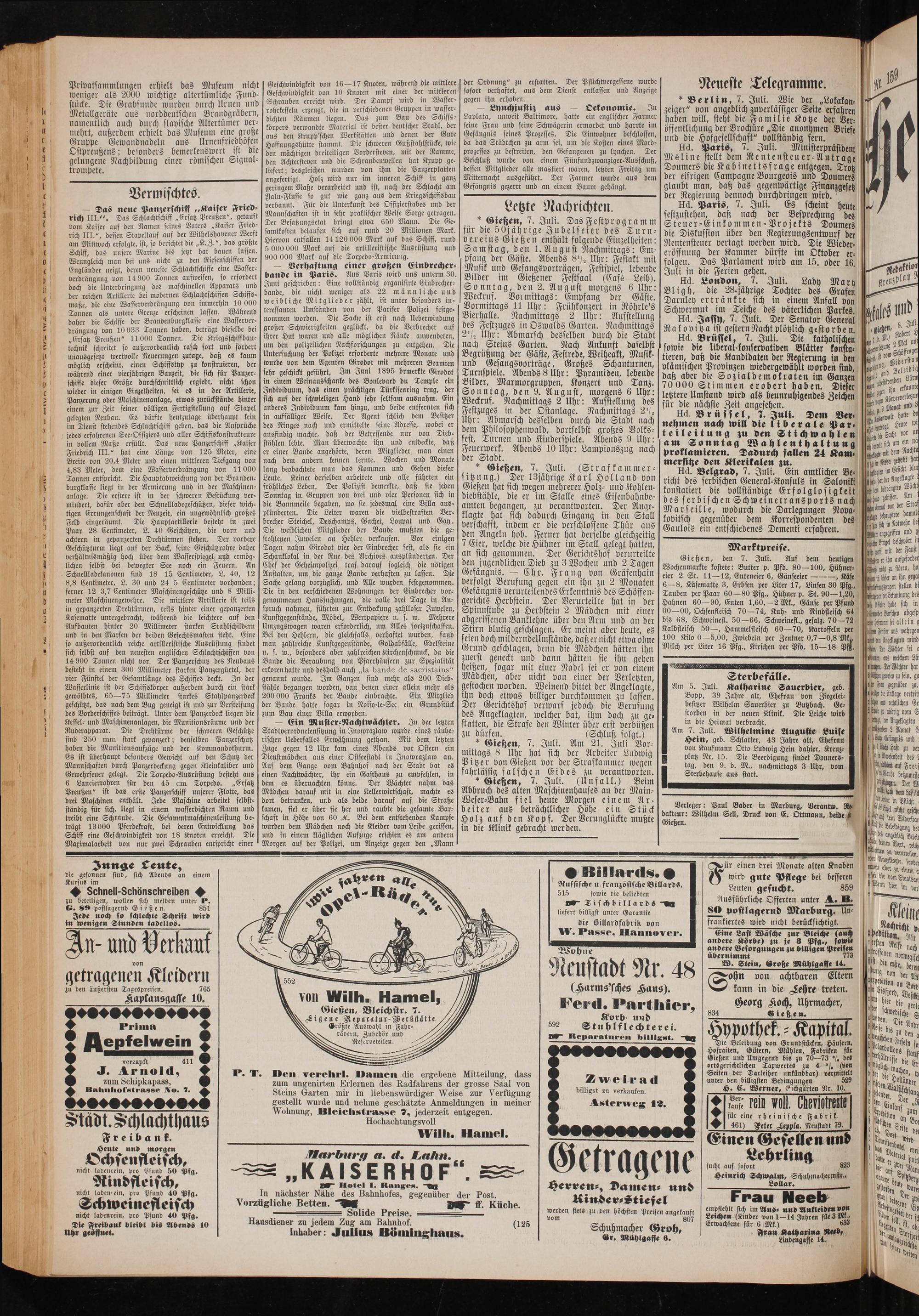 Verleger: Paul Bader in Marburg, Verantw. Re 1 7 Wilhelm Sell, Druck von E. Ottmann, beide eßen. f