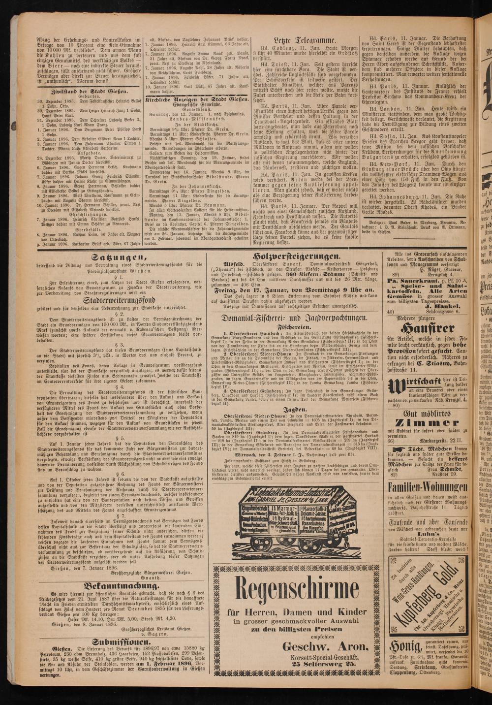 mann dahier. ——— Kirchliche Anzeigen der Stadt Gießen. Evangelische Gemeinde. Gottesdienst. Sonntag, den 12. Januar. 1. nach Epiphanias. Landes-Missionsfest. In der Stadtkirche. Vormittags 9½ Uhr: Pfarrer Dr. Grein.